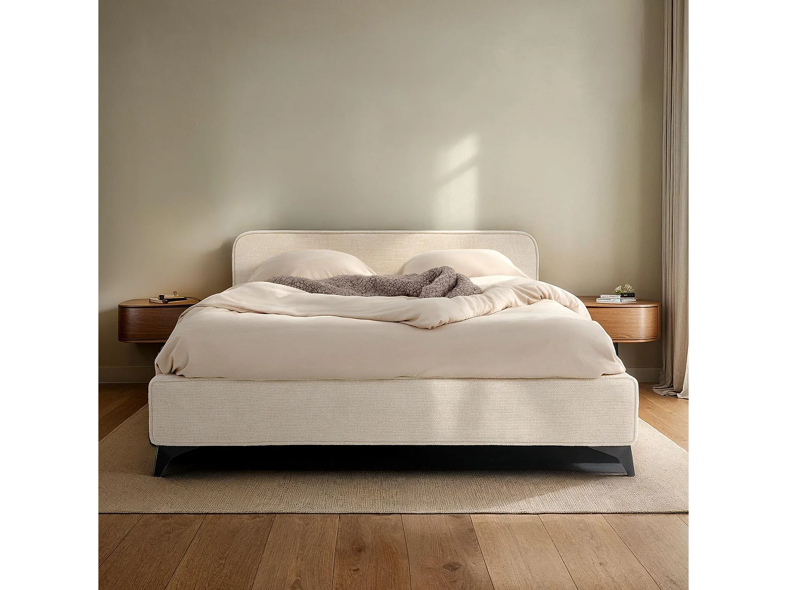 Lit double LEVERDA 140x190 cm, Revêtement en tissu, Lit style moderne pour 2 personnes, Cadre de lit avec sommier inclus, Blanc