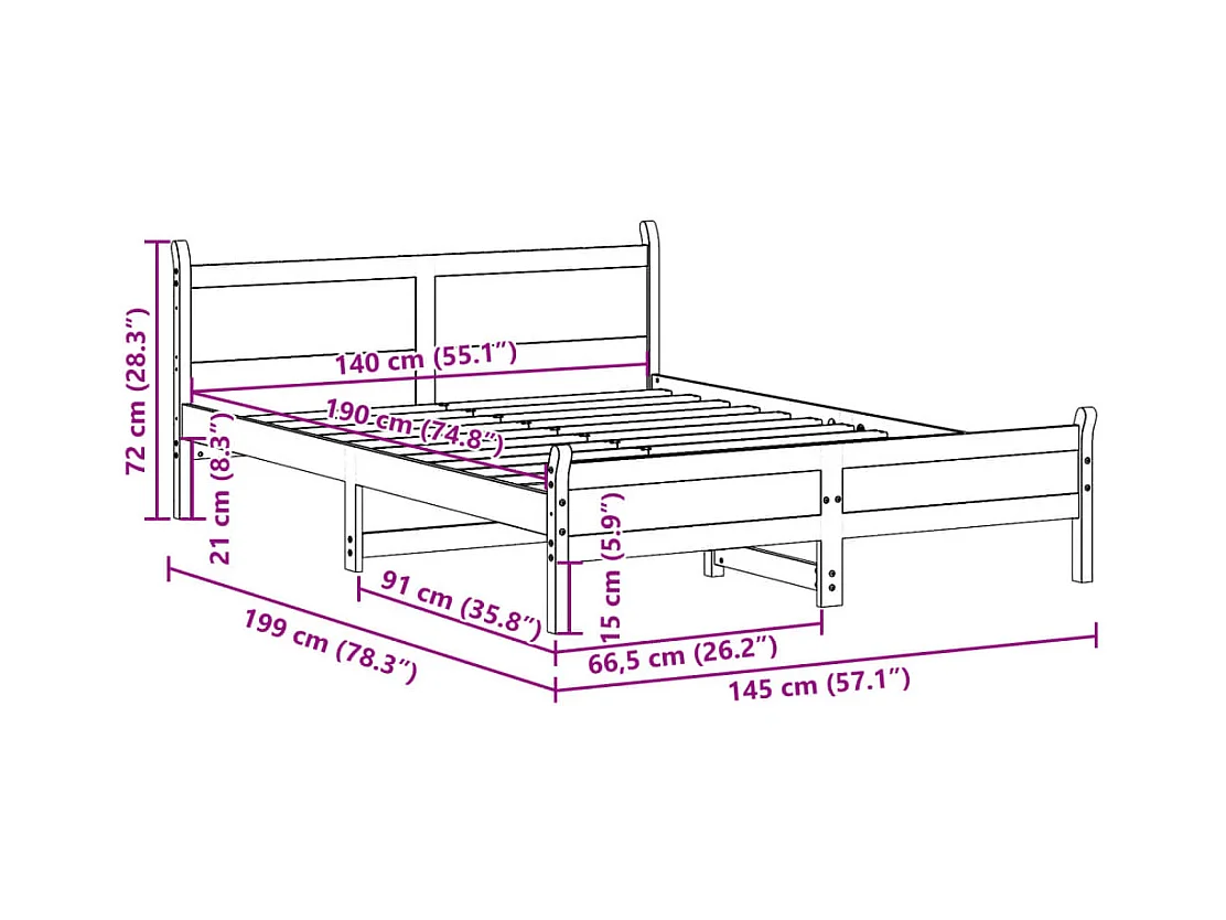 Lit double | Lit adulte | Cadre de lit 140x190 cm bois de pin massif