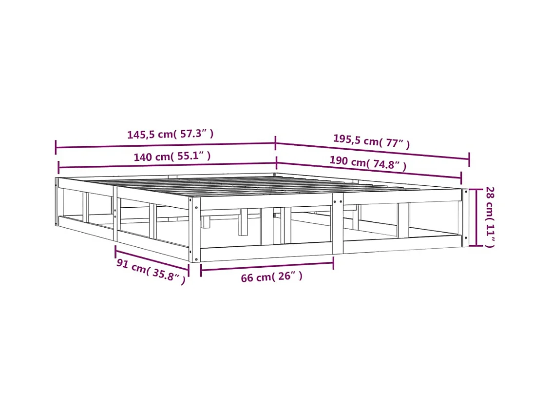 Lit double | Lit adulte | Cadre de lit 140x190 cm bois massif