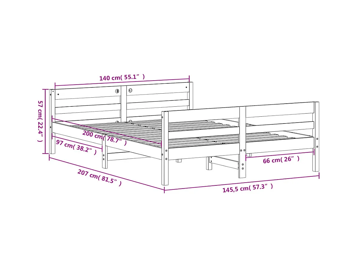 Lit double | Lit adulte | Cadre de lit 140x200 cm bois massif de pin