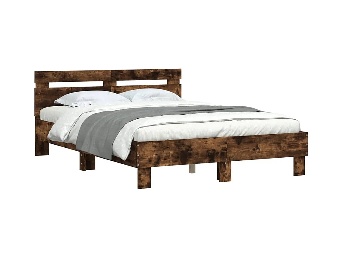 Lit double | Lit adulte | Cadre de lit avec LED chêne fumé 135x190 cm