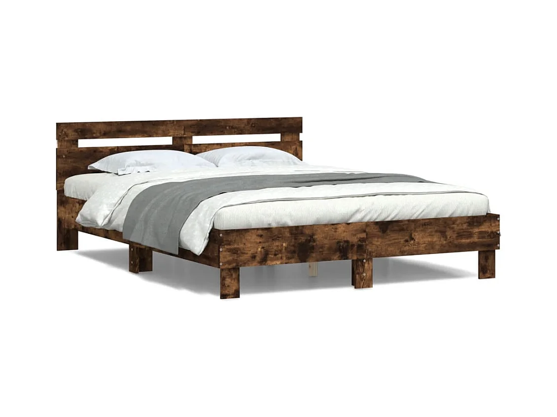 Lit double | Lit adulte | Cadre de lit avec LED chêne fumé 140x190 cm