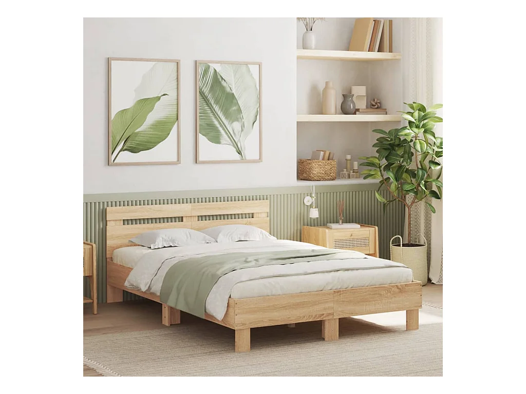 Lit double | Lit adulte | Cadre de lit avec LED chêne sonoma 135x190 cm