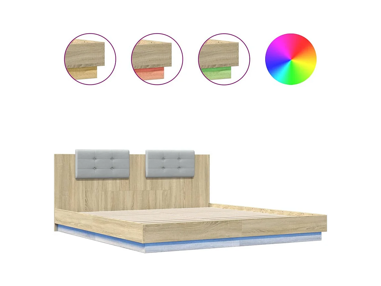 Lit double | Lit adulte | Cadre de lit avec LED chêne sonoma 160x200 cm