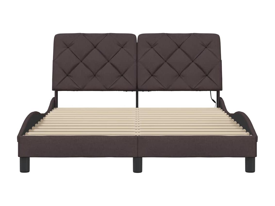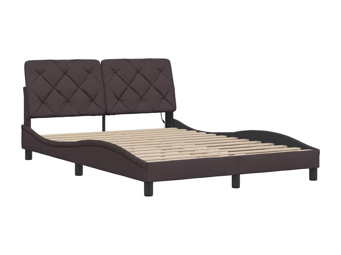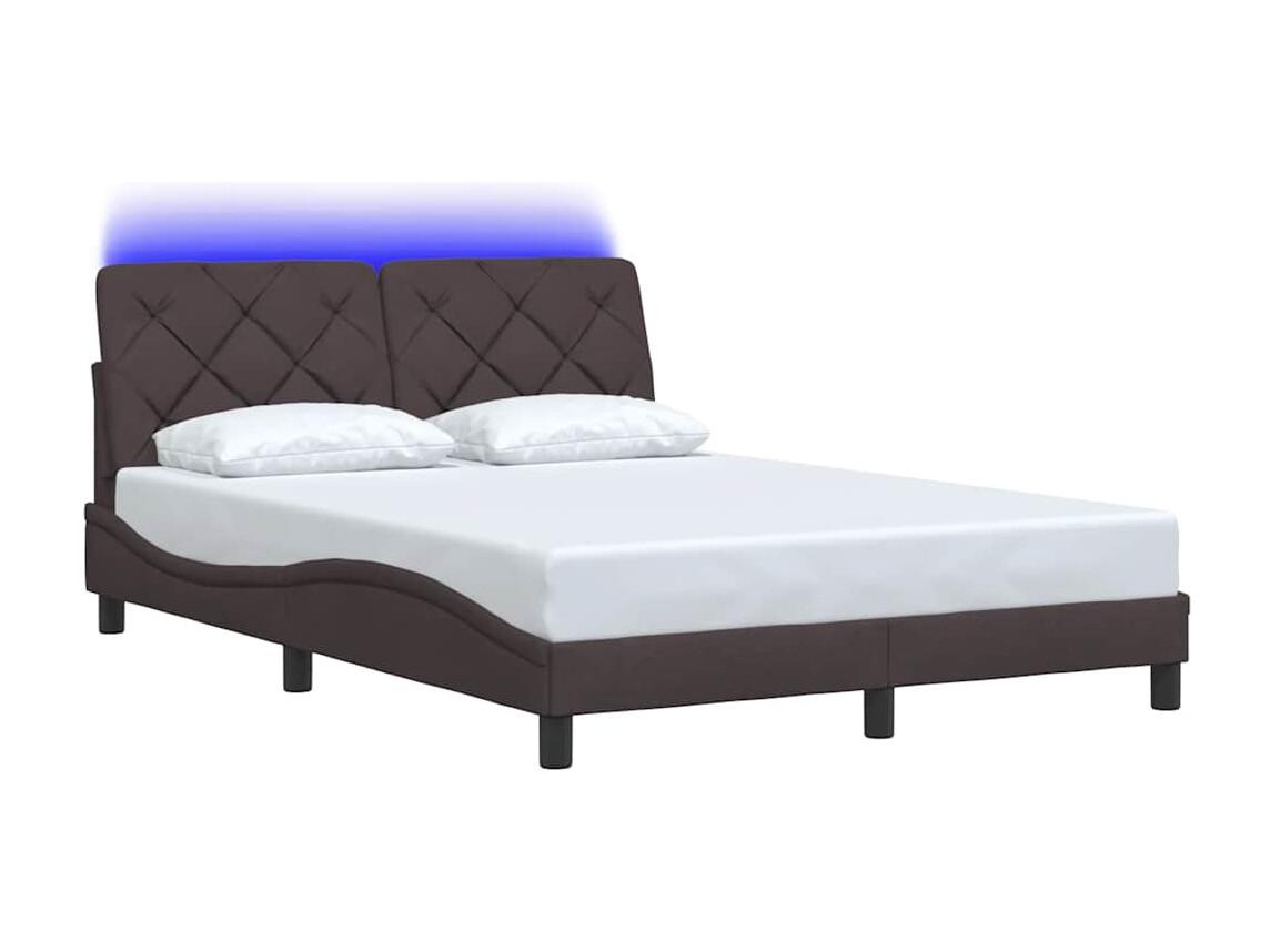 Lit double | Lit adulte | Cadre de lit avec LED marron foncé 140x190cm tissu