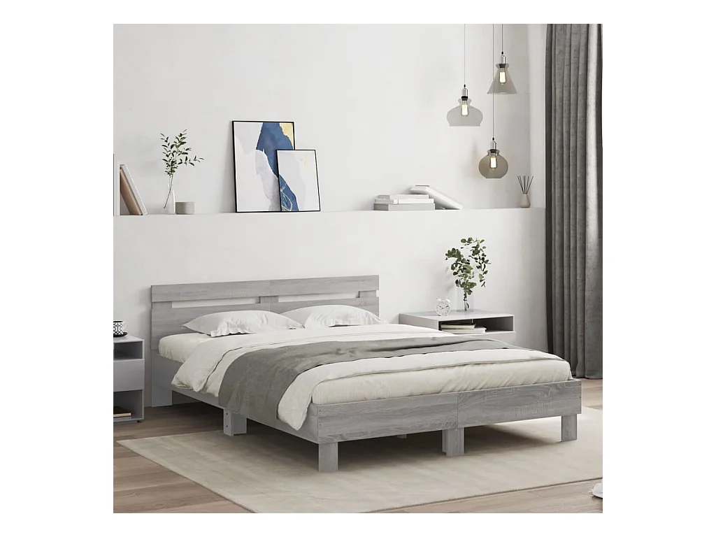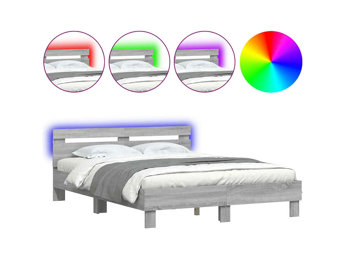Lit double | Lit adulte | Cadre de lit avec LED sonoma gris 150x200 cm