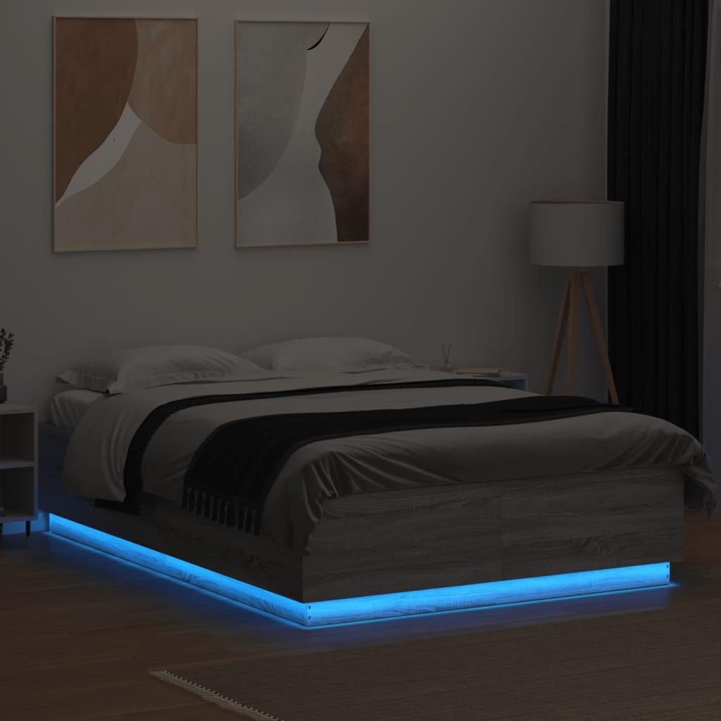 Lit double | Lit adulte | Cadre de lit avec LED sonoma gris 160x200 cm