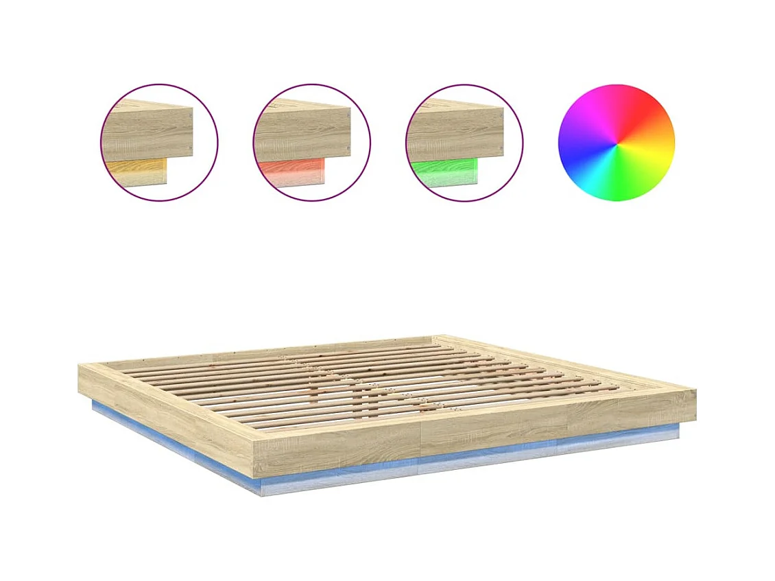 Lit double | Lit adulte | Cadre de lit avec lumières LED 200x200 cm