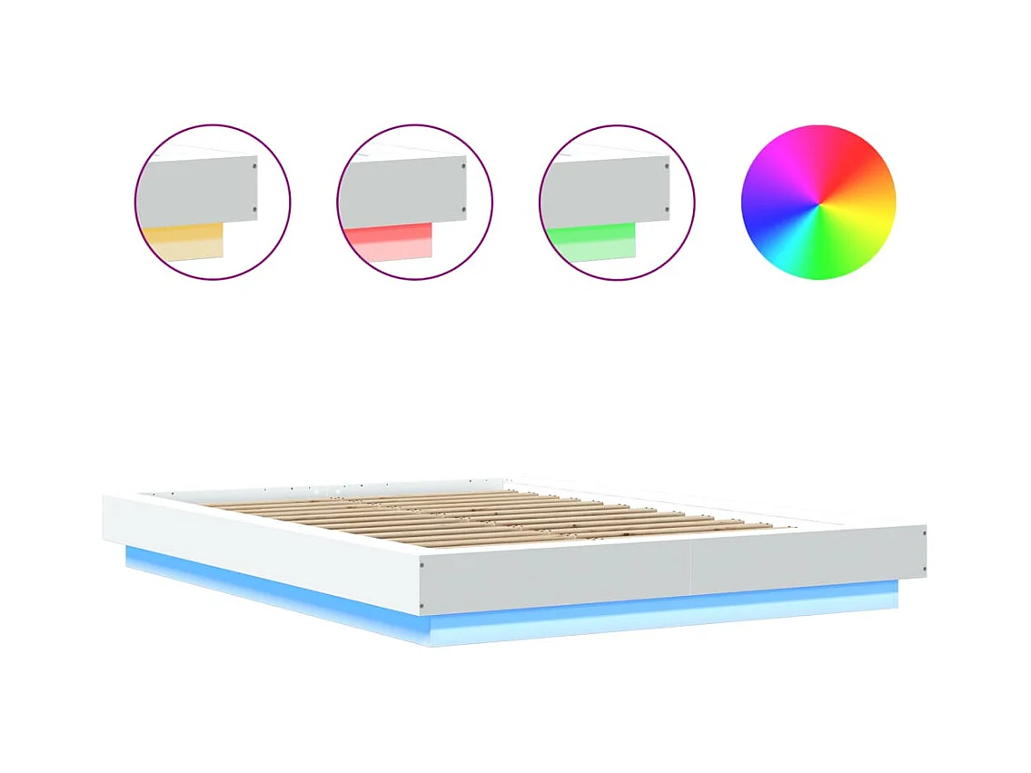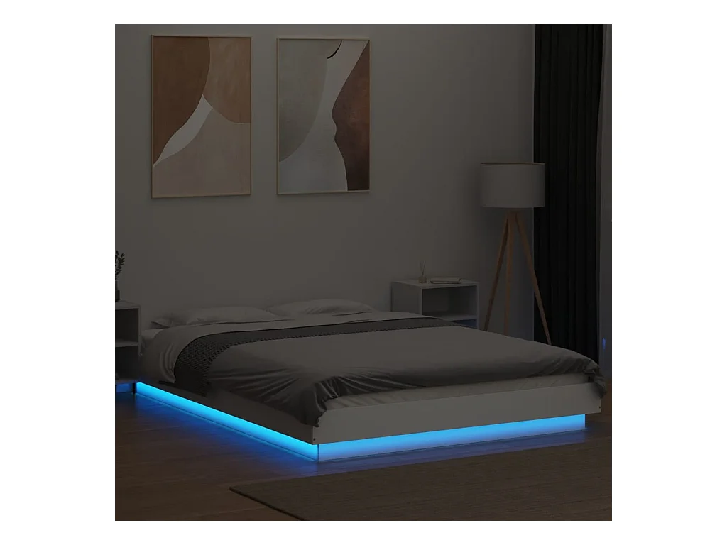 Lit double | Lit adulte | Cadre de lit avec lumières LED blanc 140x200 cm
