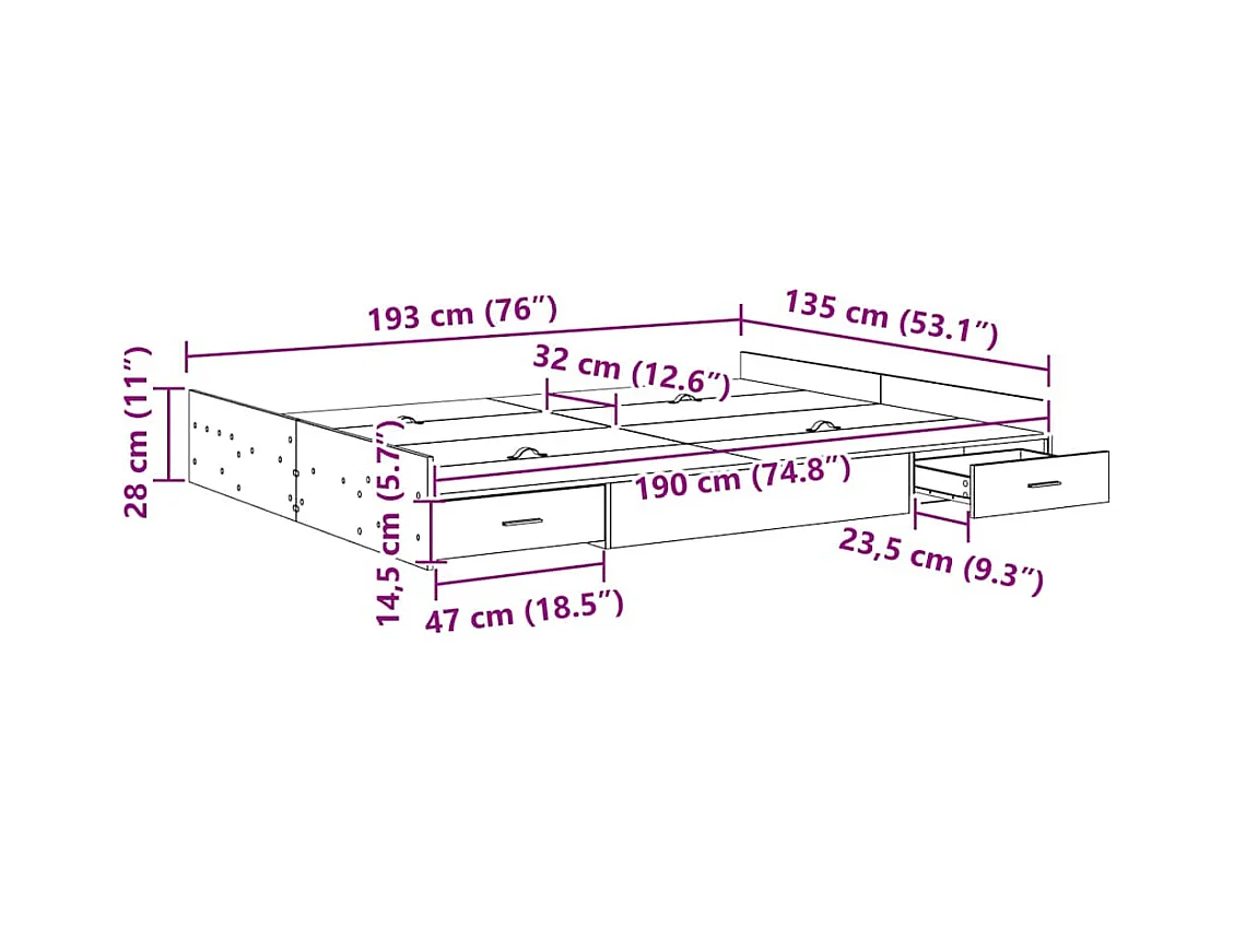 Lit double | Lit adulte | Cadre de lit avec rangement avec tête de lit Blanc 135x190 cm