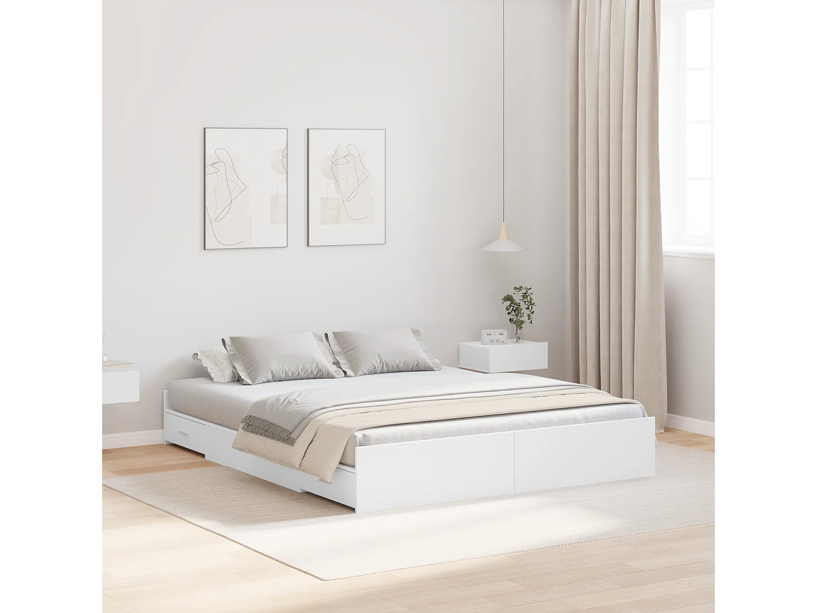 Lit double | Lit adulte | Cadre de lit avec rangement avec tête de lit Blanc 140x190 cm