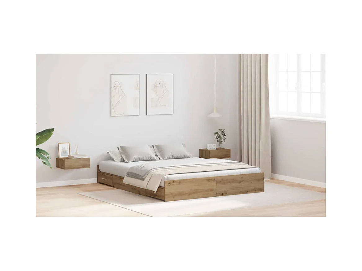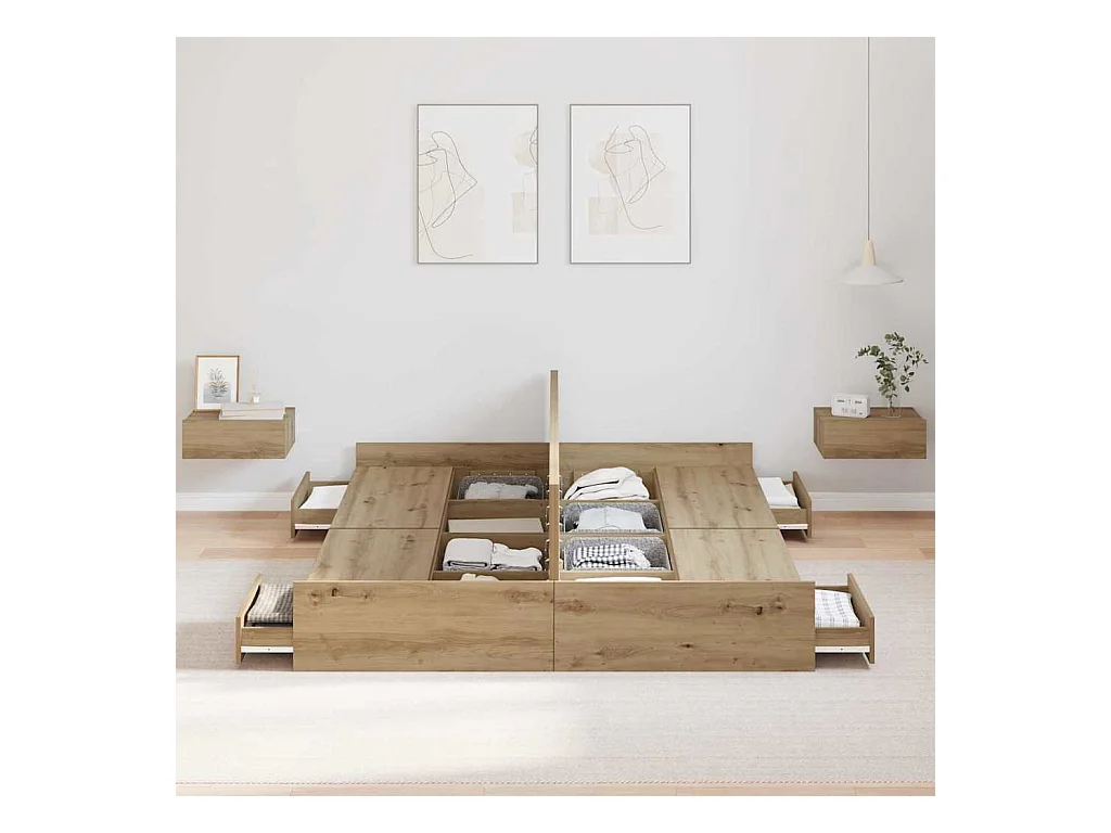 Lit double | Lit adulte | Cadre de lit avec rangement chêne artisanal 135x190 cm