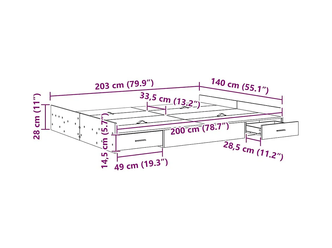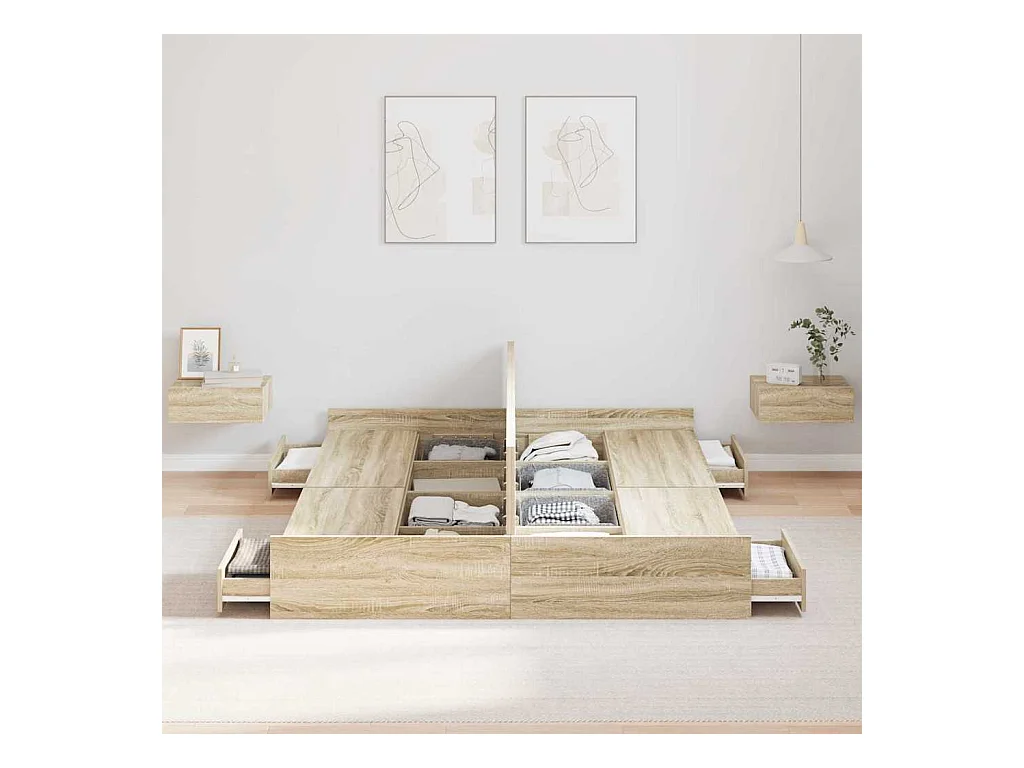 Lit double | Lit adulte | Cadre de lit avec rangement Chêne sonoma 140x200 cm
