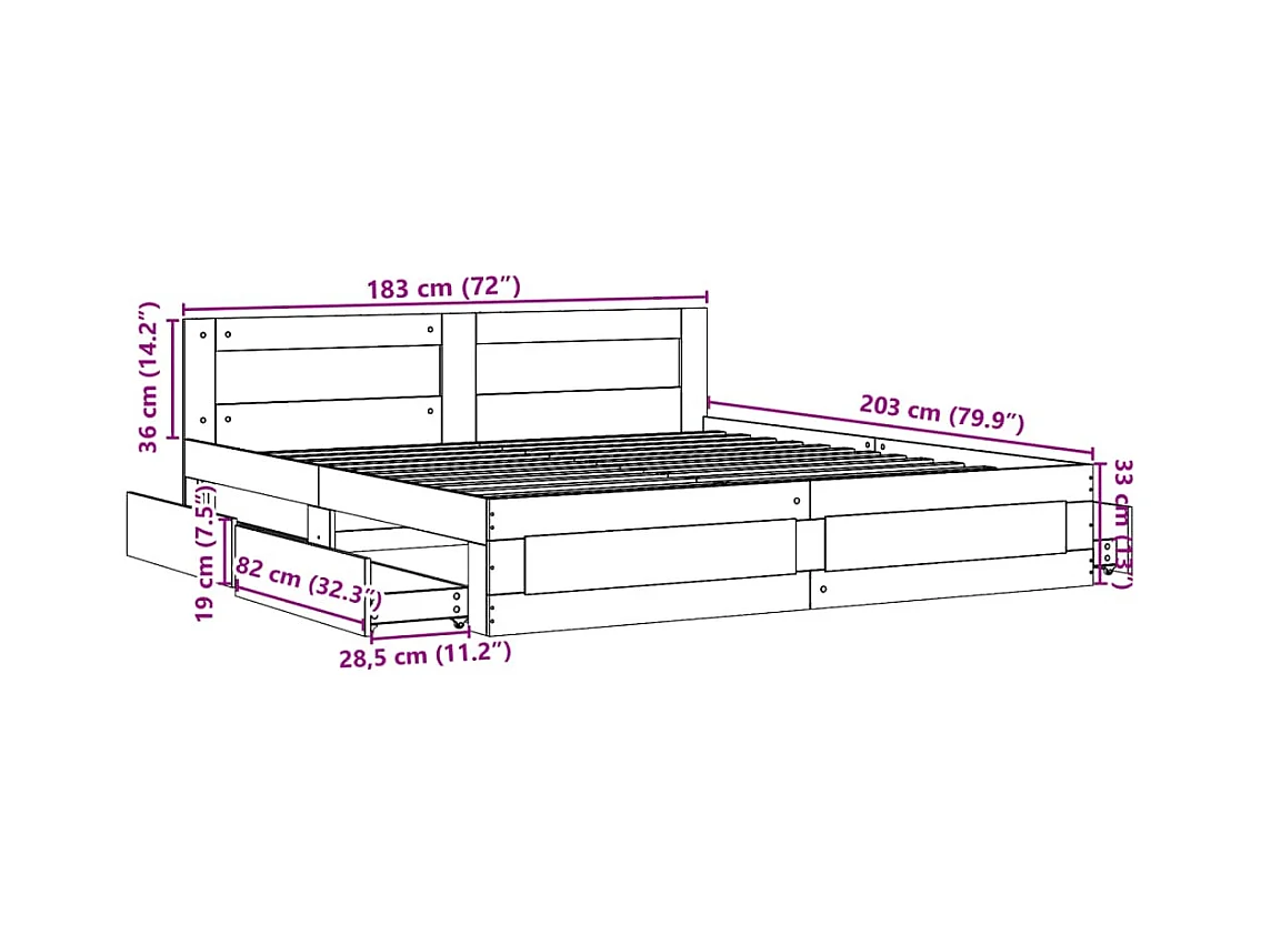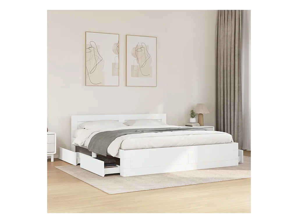 Lit double | Lit adulte | Cadre de lit avec tête de lit blanc 180x200 cm
