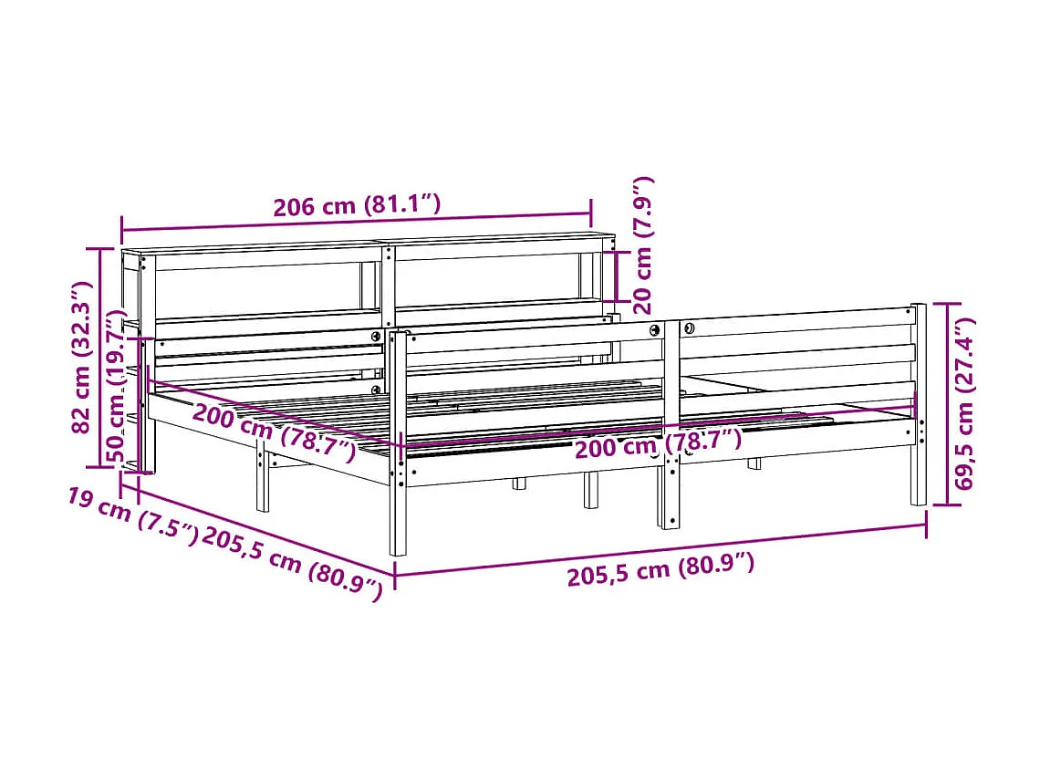 Lit double | Lit adulte | Cadre de lit avec tête de lit blanc 200x200 cm