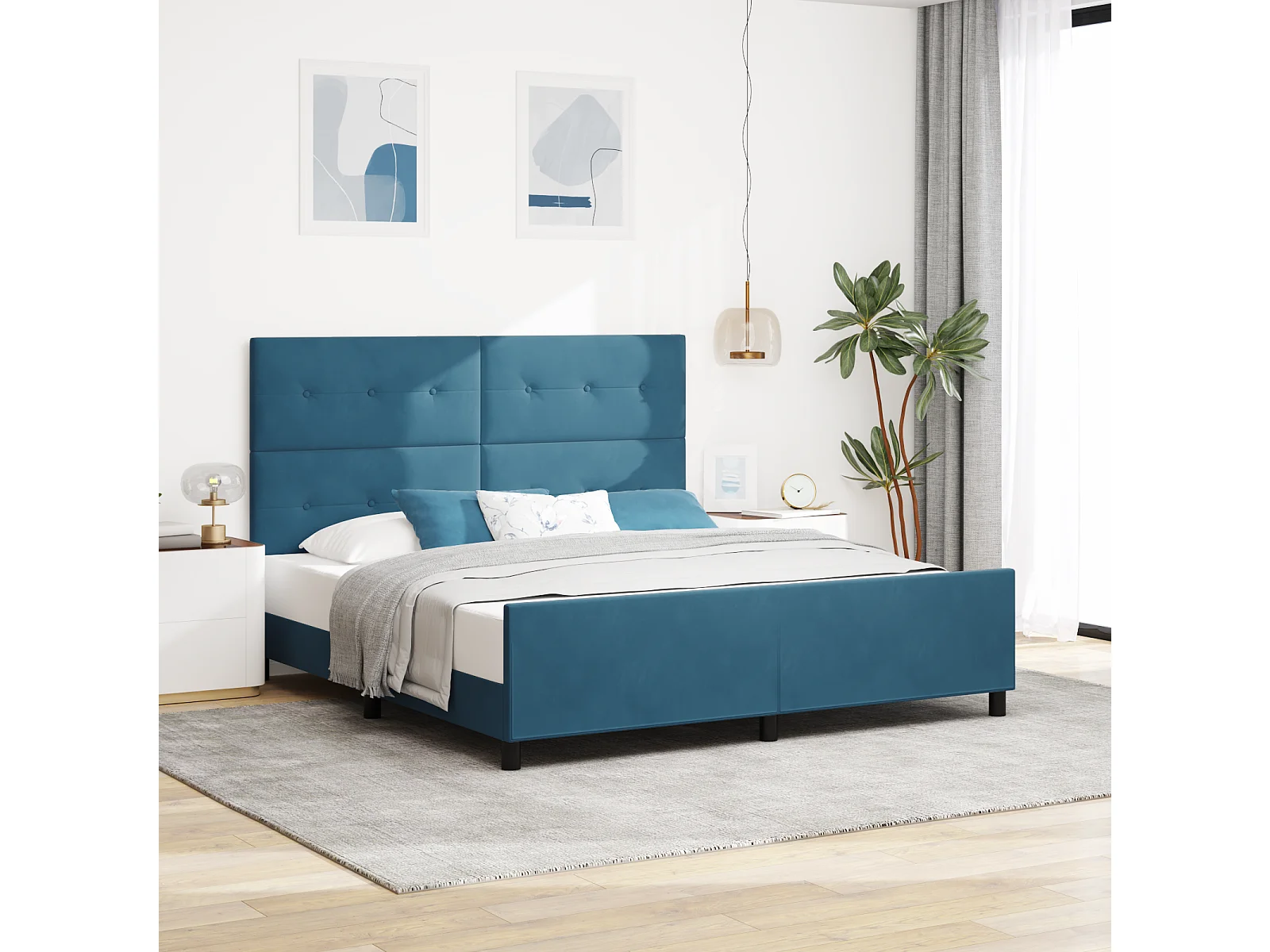 Lit double | Lit adulte | Cadre de lit avec tête de lit Bleu foncé 180x200 cm Velours