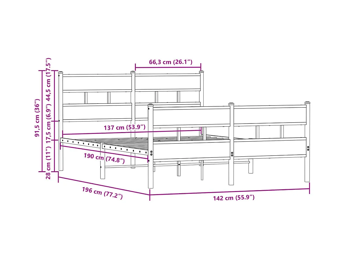 Lit double | Lit adulte | Cadre de lit avec tête de lit et pied de lit 137x190 cm