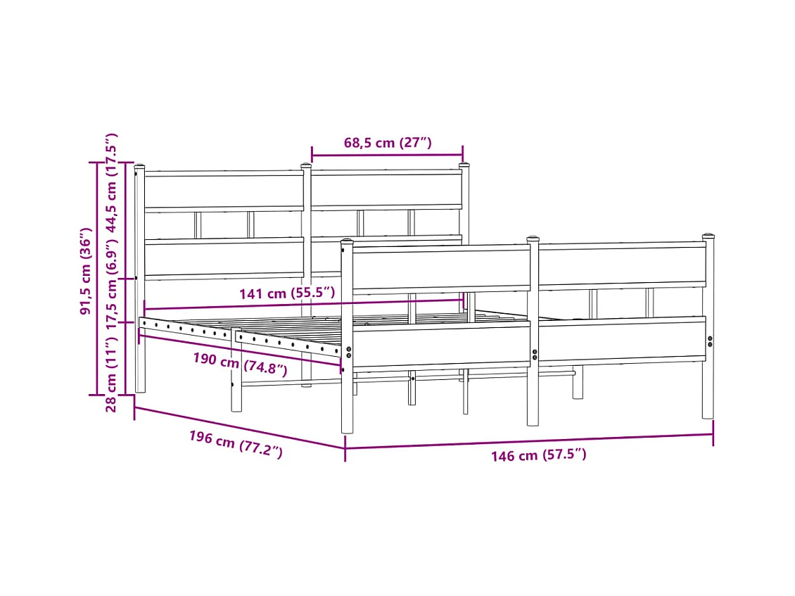 Lit double | Lit adulte | Cadre de lit avec tête de lit et pied de lit 140x190 cm