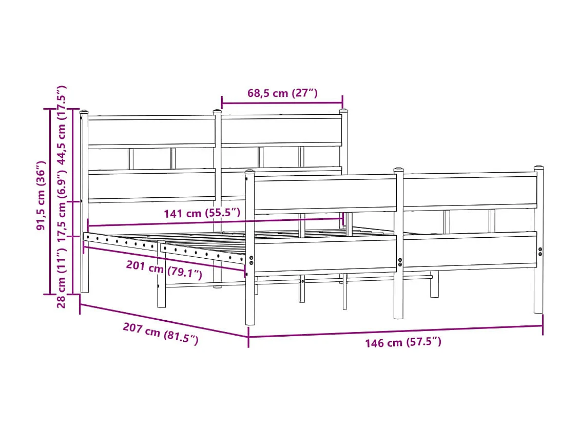 Lit double | Lit adulte | Cadre de lit avec tête de lit et pied de lit 140x200 cm