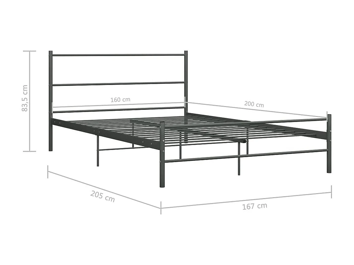 Lit double | Lit adulte | Cadre de lit avec tête de lit gris 160x200cm métal
