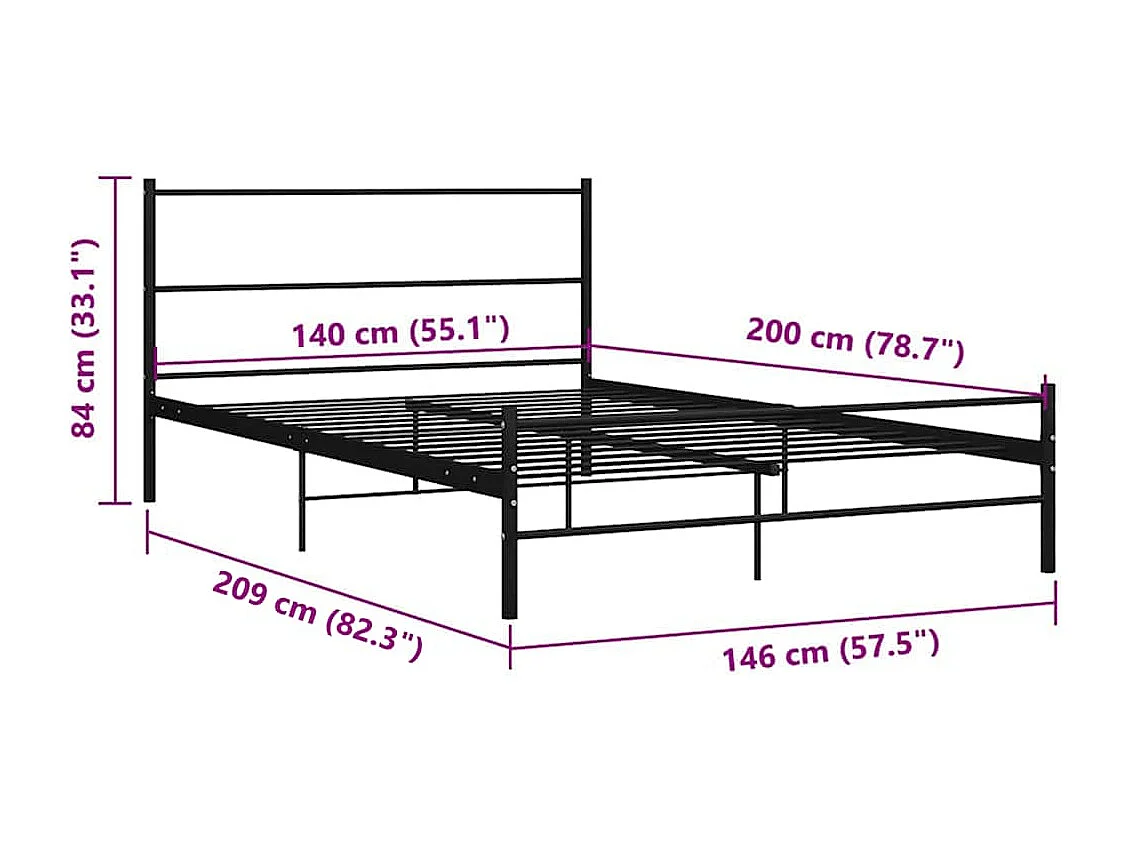 Cadre de lit métal sans matelas avec pied de lit noir 140x200cm