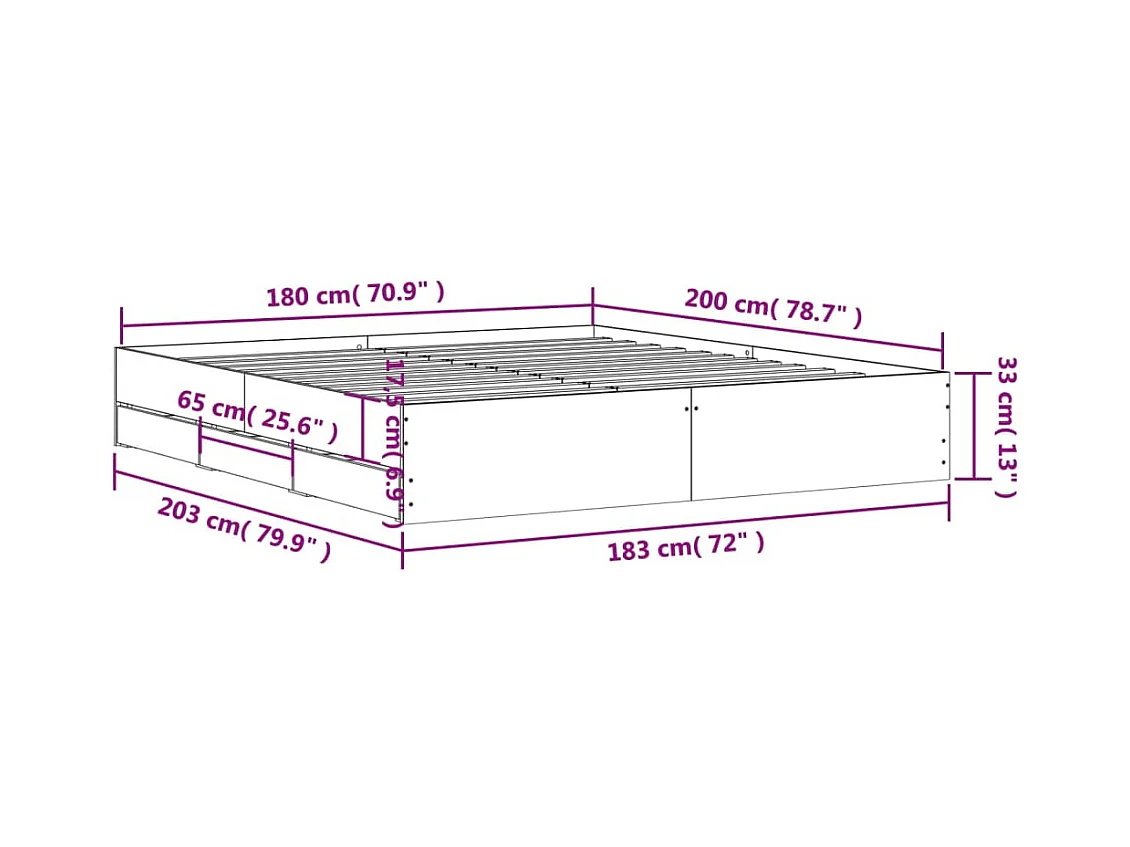 Lit double | Lit adulte | Cadre de lit avec tiroirs blanc 180x200 cm