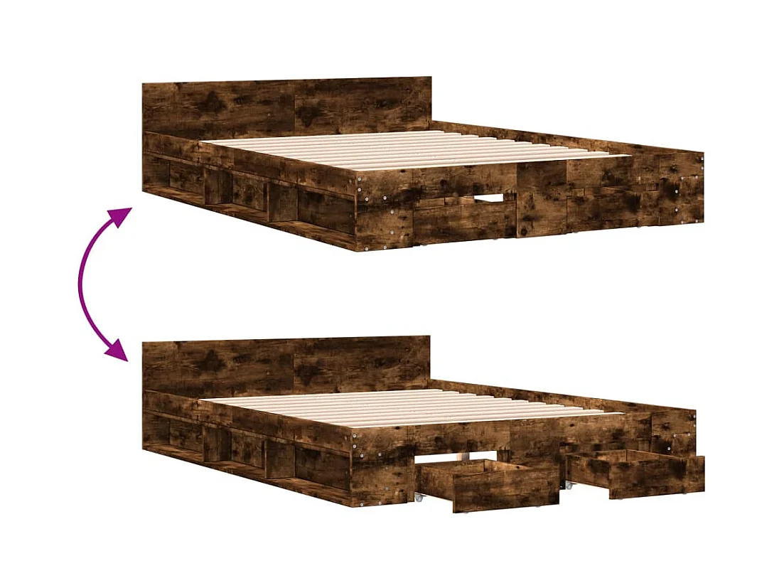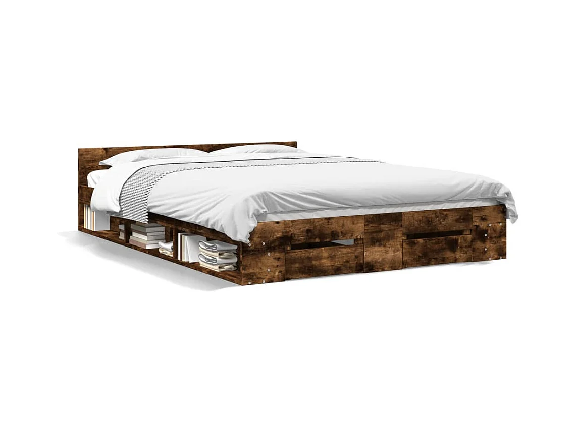 Lit double | Lit adulte | Cadre de lit avec tiroirs chêne fumé 140x200 cm