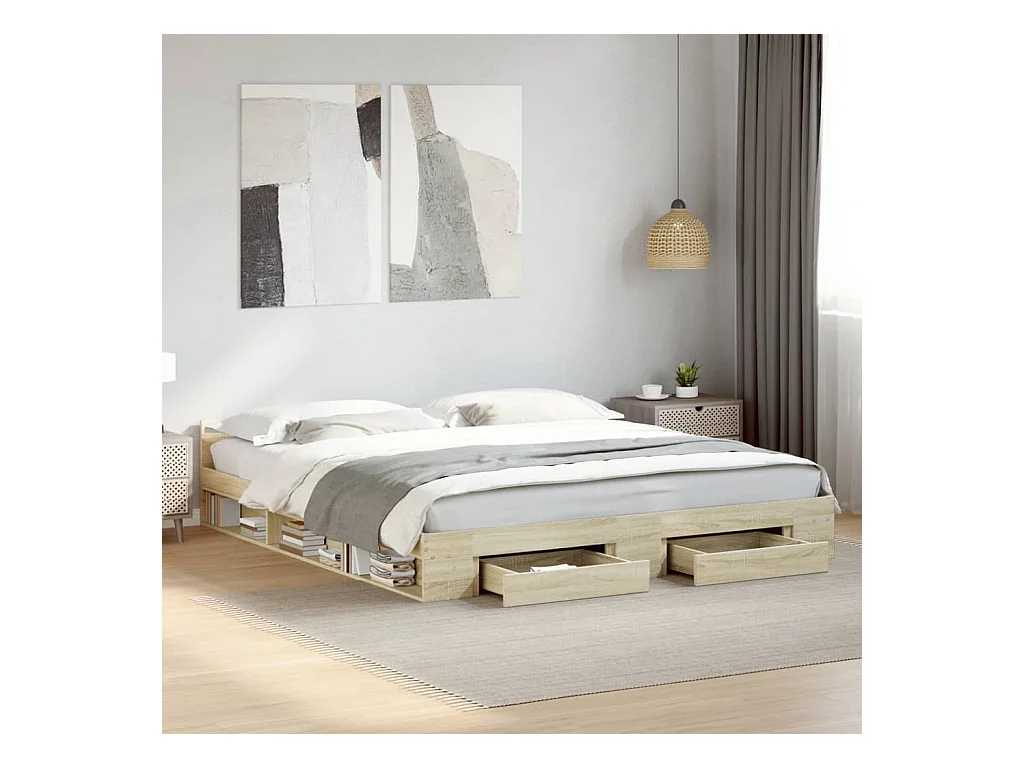 Lit double | Lit adulte | Cadre de lit avec tiroirs chêne sonoma 180x200 cm