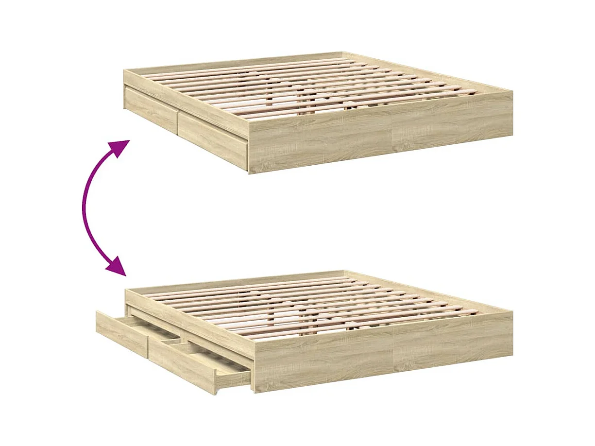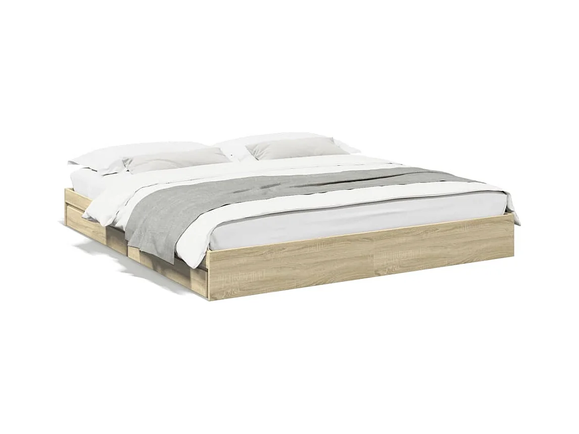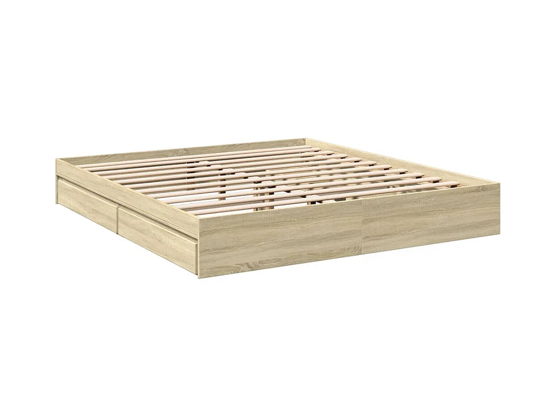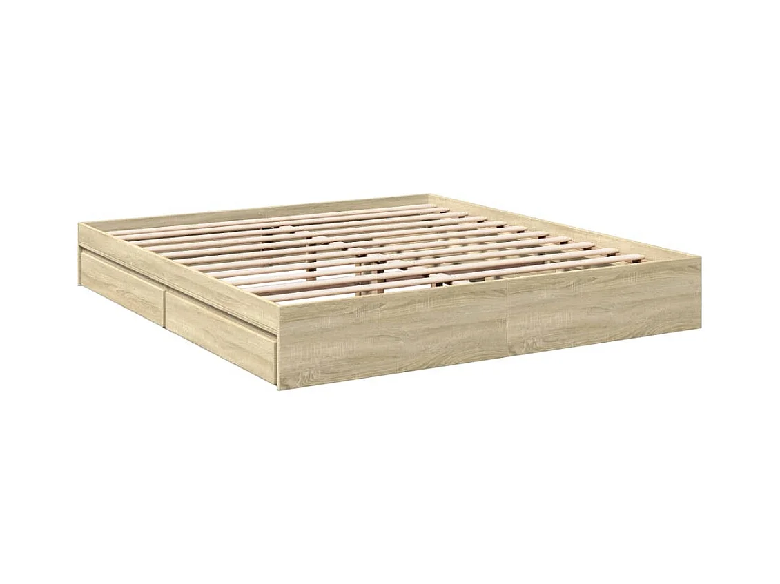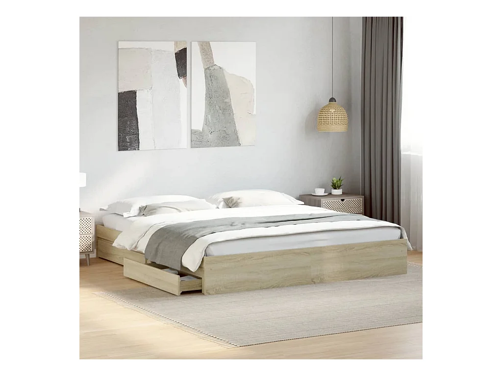 Lit double | Lit adulte | Cadre de lit avec tiroirs chêne sonoma 200x200 cm