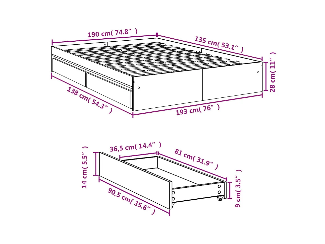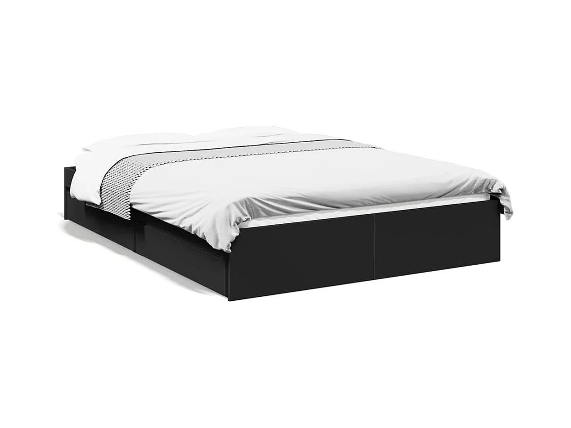 Lit double | Lit adulte | Cadre de lit avec tiroirs noir 135x190 cm