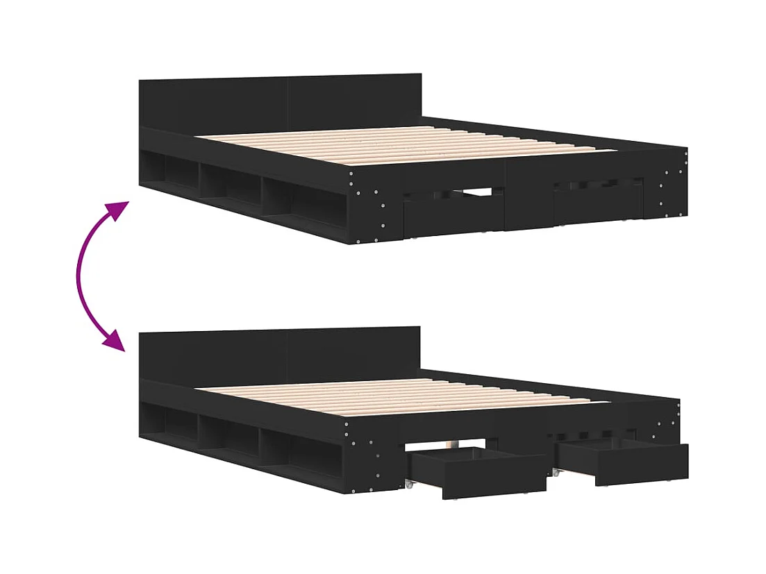 Lit double | Lit adulte | Cadre de lit avec tiroirs noir 150x200 cm