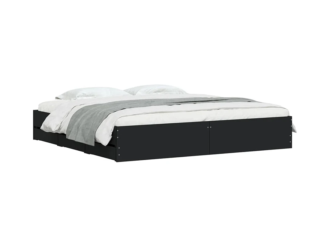 Lit double | Lit adulte | Cadre de lit avec tiroirs noir 200x200 cm