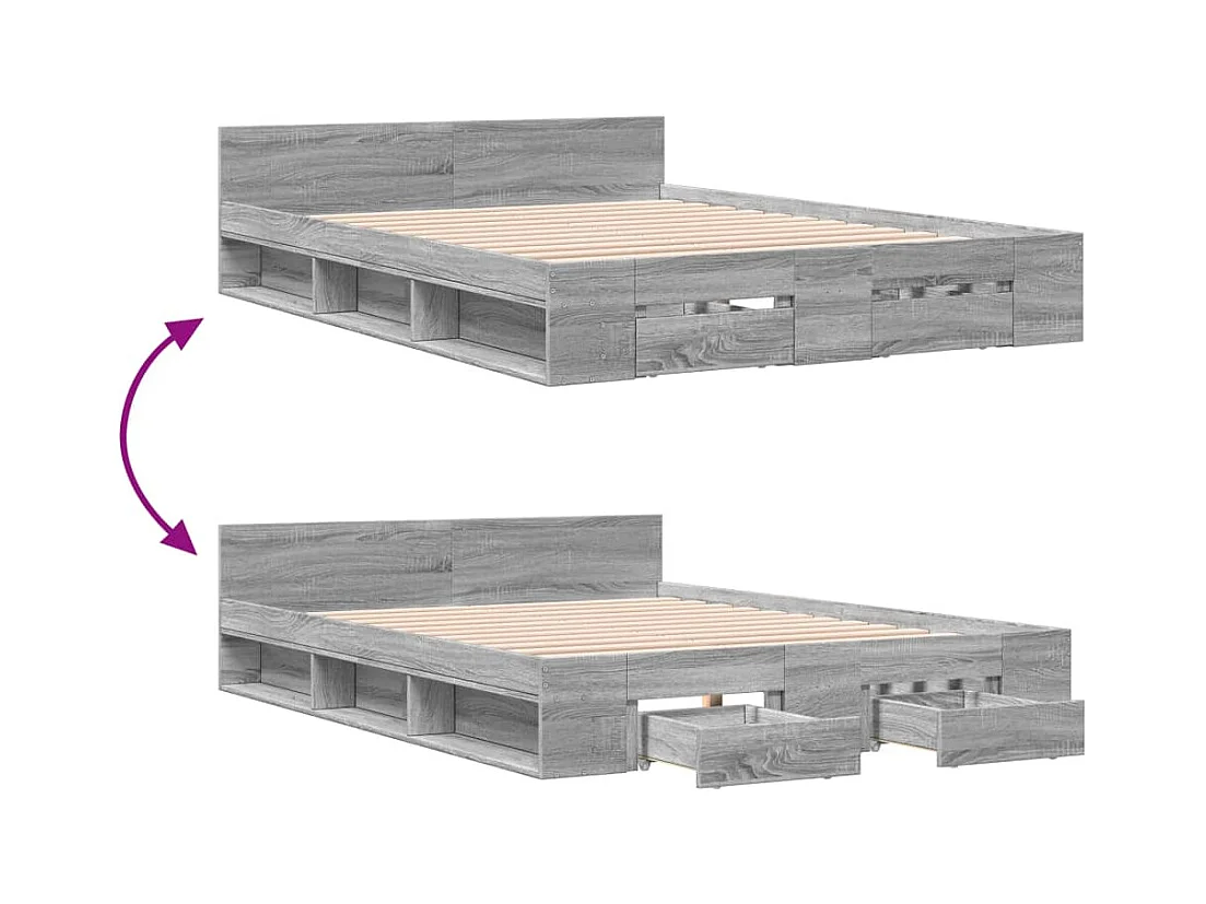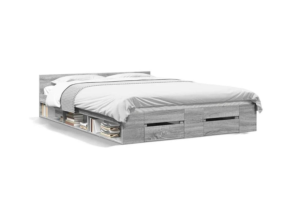 Lit double | Lit adulte | Cadre de lit avec tiroirs sonoma gris 140x200 cm