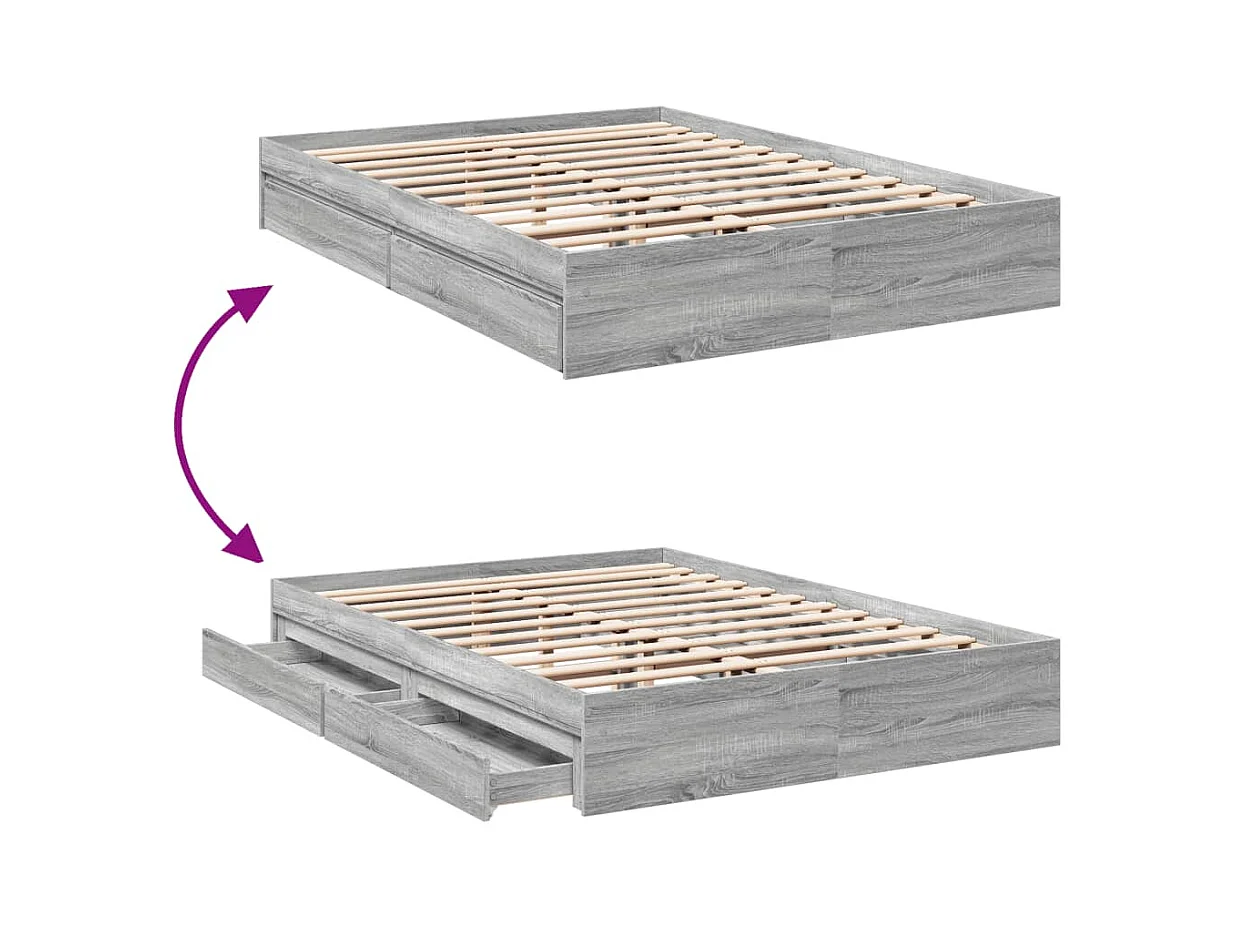 Lit double | Lit adulte | Cadre de lit avec tiroirs sonoma gris 160x200 cm