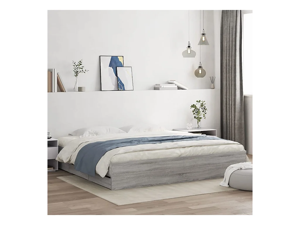 Lit double | Lit adulte | Cadre de lit avec tiroirs sonoma gris 180x200 cm