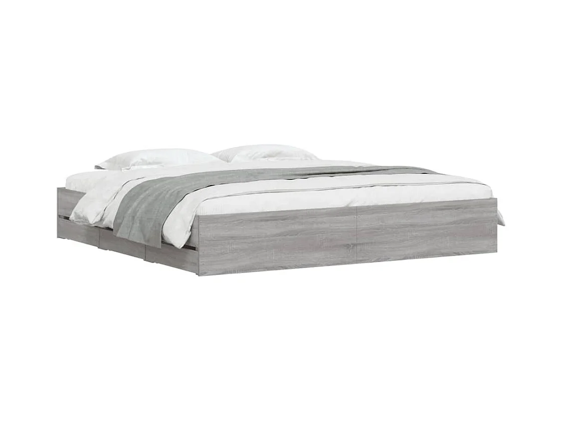 Lit double | Lit adulte | Cadre de lit avec tiroirs sonoma gris 200x200 cm