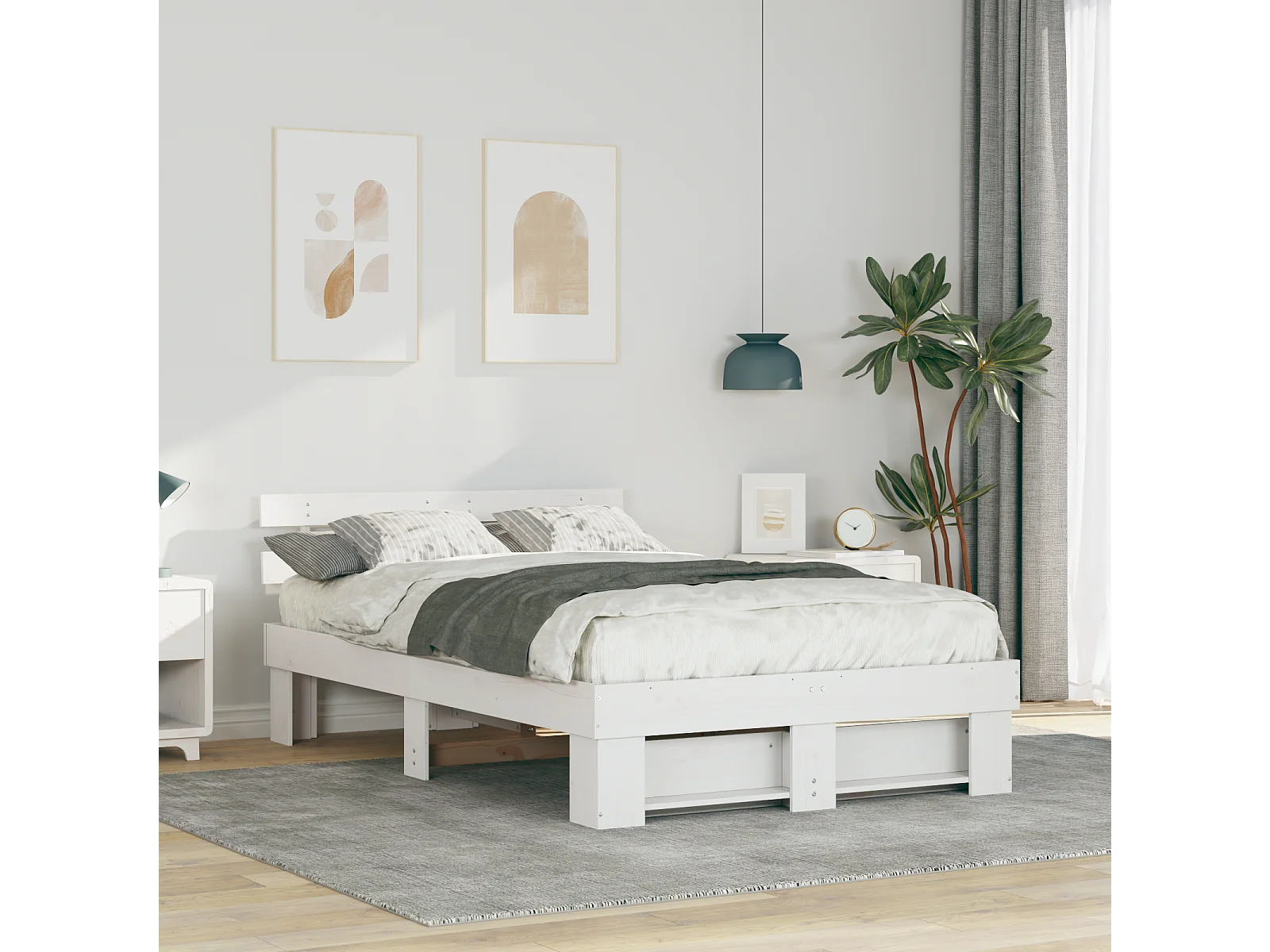 Lit double | Lit adulte | Cadre de lit Blanc 135x190 cm Bois massif en pin