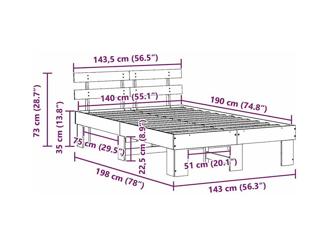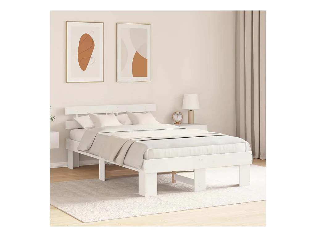 Lit double | Lit adulte | Cadre de lit Blanc 140x190 cm Bois de pin massif