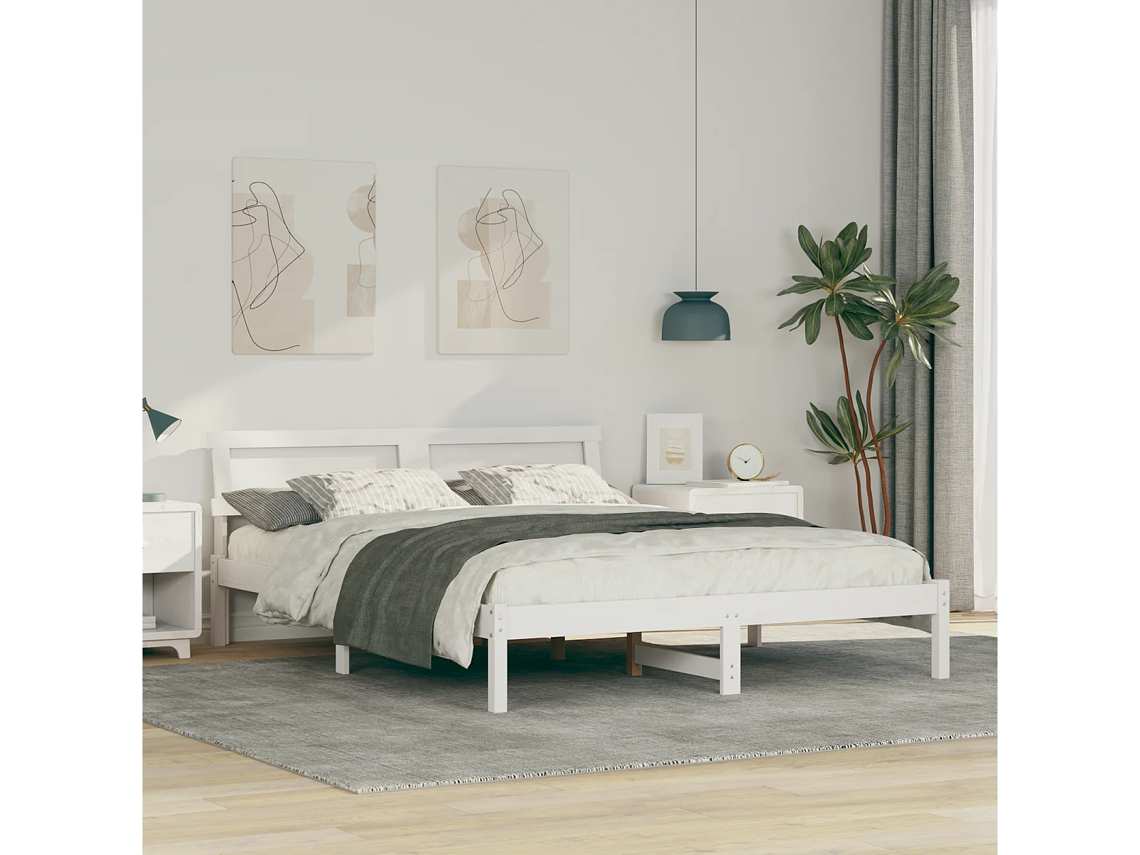 Lit double | Lit adulte | Cadre de lit Blanc 150x200 cm Bois massif en pin