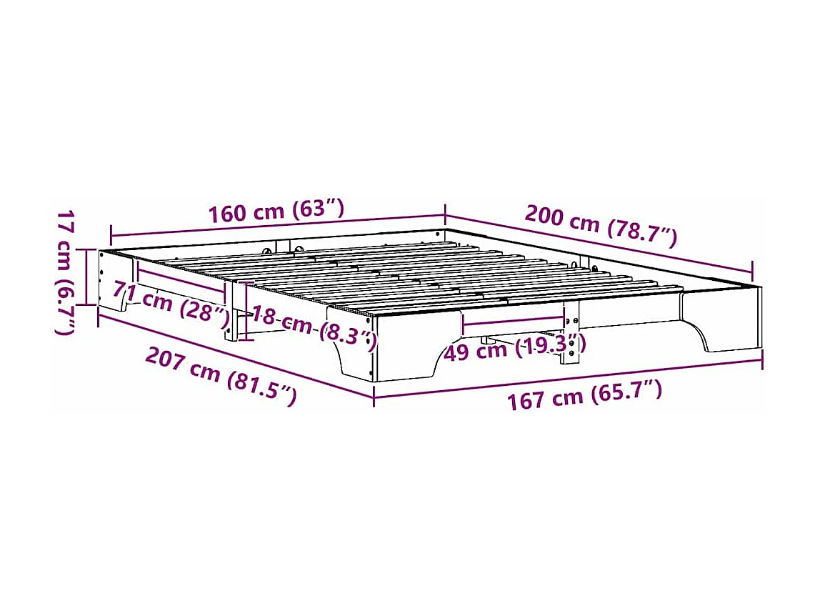 Lit double | Lit adulte | Cadre de lit blanc 160x200 cm en bois de pin massif