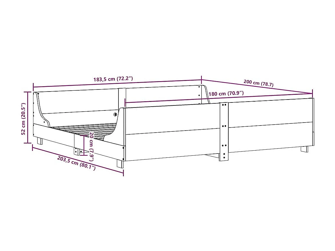 Lit double | Lit adulte | Cadre de lit blanc 180x200 cm bois massif de pin