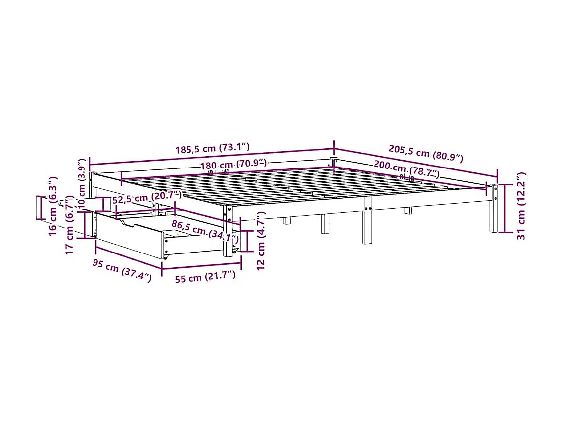 Lit double | Lit adulte | Cadre de lit blanc 180x200 cm bois massif de pin