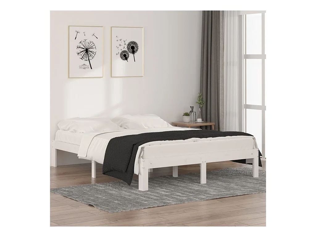 Cadre de lit Blanc Bois massif 140x190 cm