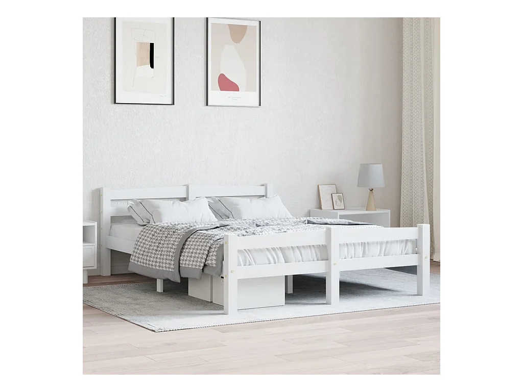 Lit double | Lit adulte | Cadre de lit blanc bois de pin massif 140x200 cm