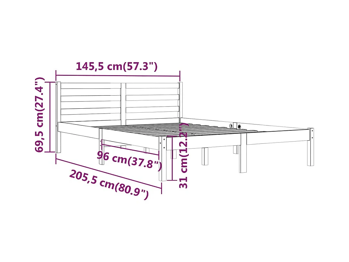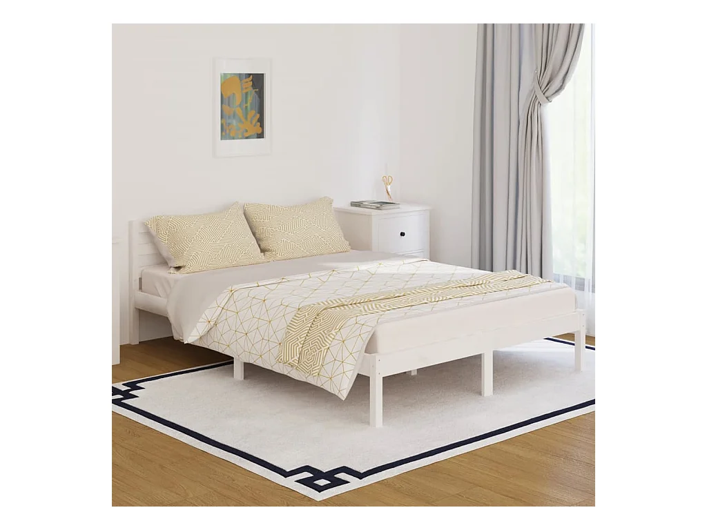 Lit double | Lit adulte | Cadre de lit bois de pin massif 140x200 cm blanc