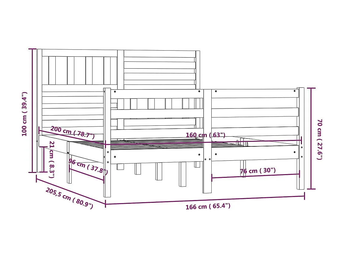 Lit double | Lit adulte | Cadre de lit bois massif 160x200 cm