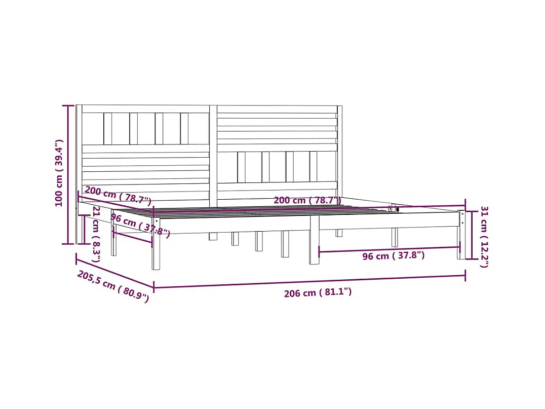 Lit double | Lit adulte | Cadre de lit bois massif de pin 200x200 cm