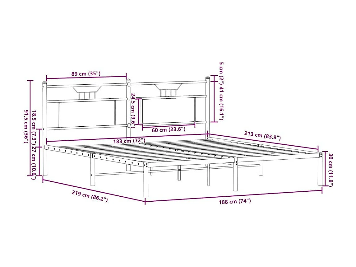 Lit double | Lit adulte | Cadre de lit chêne fumé 183x213 cm bois ingénierie