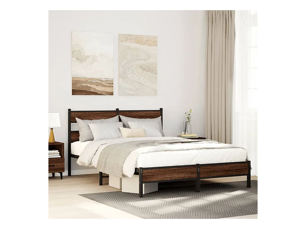 Cadre de lit en métal sans matelas chêne marron 140x200 cm