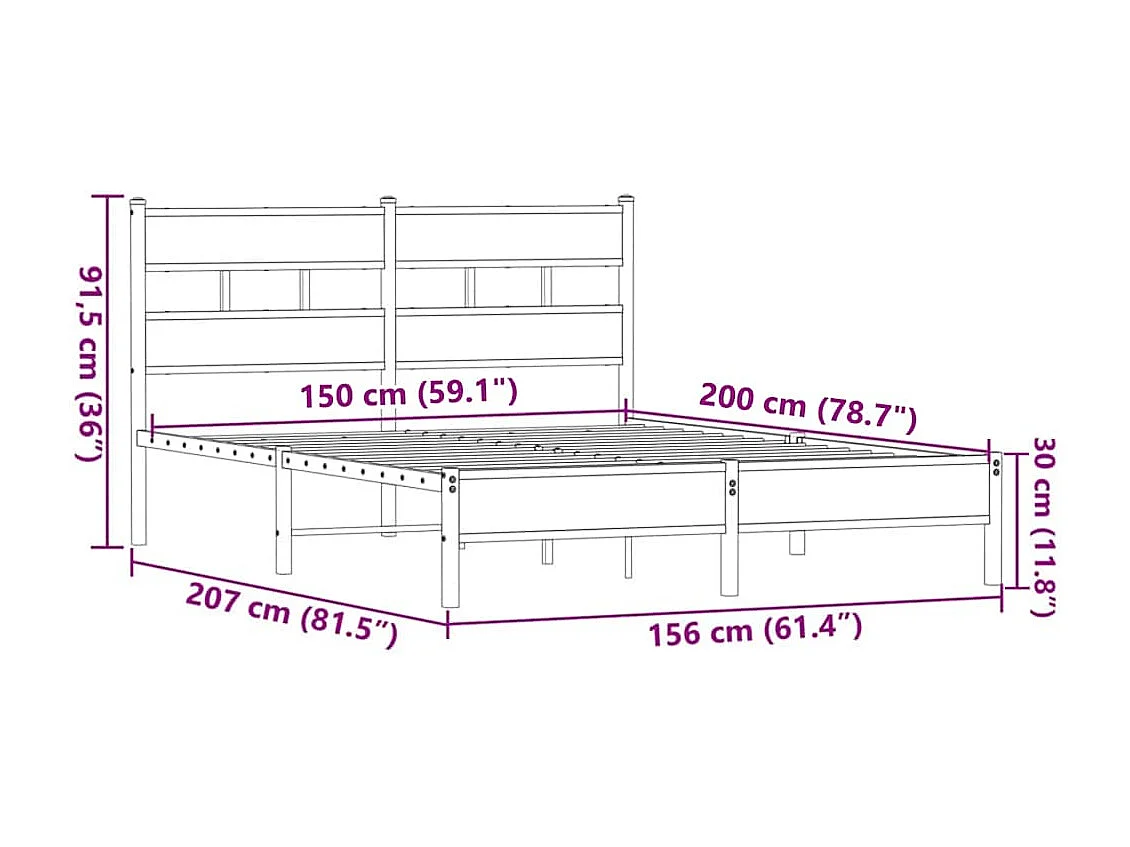 Cadre de lit en métal sans matelas chêne fumé 150x200 cm